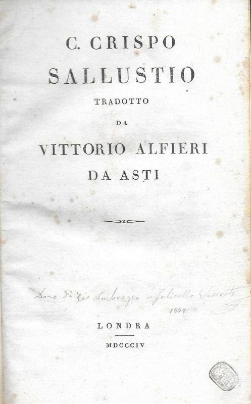 In-.8°, legatura in mezza pelle con titolo e fregi in oro al dorso, pp. 246. (Precisazioni bibliografiche su:- PARENTI, Dizionario dei luoghi di stampa falsi, inventati e supposti, pag. 127).