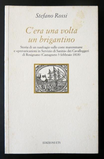 Edizioni ETS, Pisa, 2002. In 8vo lungo, pp. 110 + 2 editoriali, ill. fot., schemi e disegni in b/n n. t. , bross. edit. in carta rigata con piccola ill. al piatto. Storia di un naufragio avvenuto la notte del 3 febbraio 1818 nello specchio d’acqua prospicente la foce del torrente Seggio, nel territorio di Castagneto Carducci. Aspetti sanitari, organizzazione militare e ricerca scientifica accompagnano un testo scorrevole e di facile lettura, da cui emergono aspetti talora grotteschi tipici di una diffusa miseria popolare. Una macchietta rossa al taglio superiore, conservazione molto buona. .