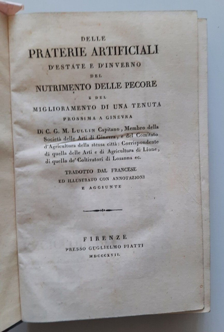 DELLE PRATERIE ARTIFICIALI D'ESTATE E D'INVERNO E DEL NUTRIMENTO DELLE PECORE .... DI C.G.M. LULLIN FIRENZE PRESSO GUGLIELMO PIATTI 1817In