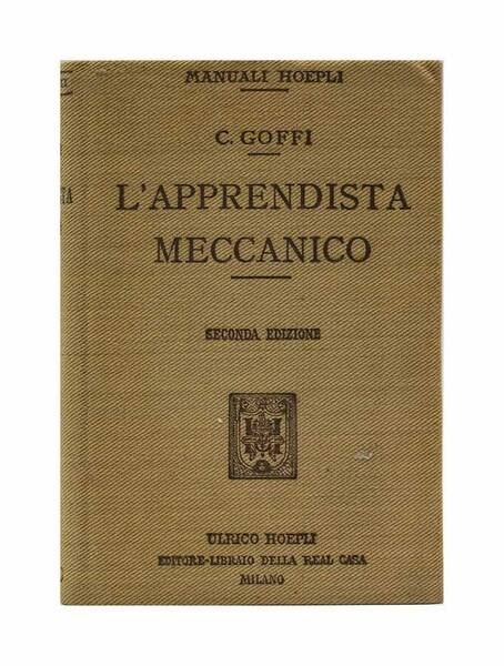 Autore: Carlo Goffi Titolo: L'apprendista meccanico Sottotitolo: Disegno geometrico e meccanico - meccanica motori a vapore - motori a combustione interna (a gas povero, a benzina, ad olio pesante) - impianti frigoriferi - principali metalli usati nelle industrie meccaniche; loro lavorazione Edizione: Ulrico Hoepli 1920 seconda edizione riveduta ed ampliata Dimensioni: 14,5x10 cm Pagine: 530 Copertina: Telata qualche pagina mancante nell'indice Peso: 0,249 kg