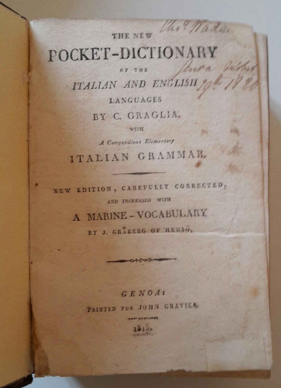 C. GRAGLIA NEW POCKET DICTIONARY ITALIAN ENGLISH MARINE VOCABULARY GENOA GRAVIER
