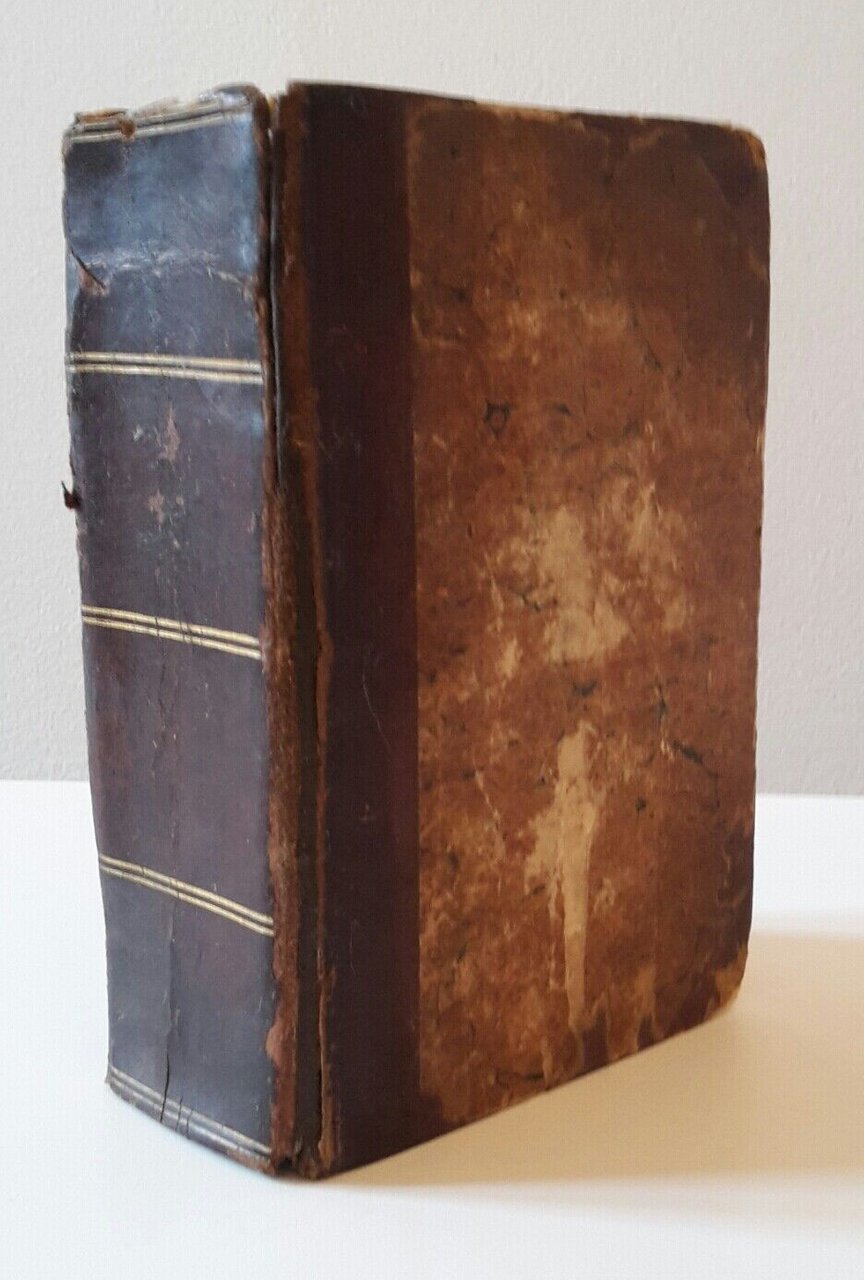 In 12°, pag. LVIII 552, legatura in mezza pelle con fregi in oro al dorso.