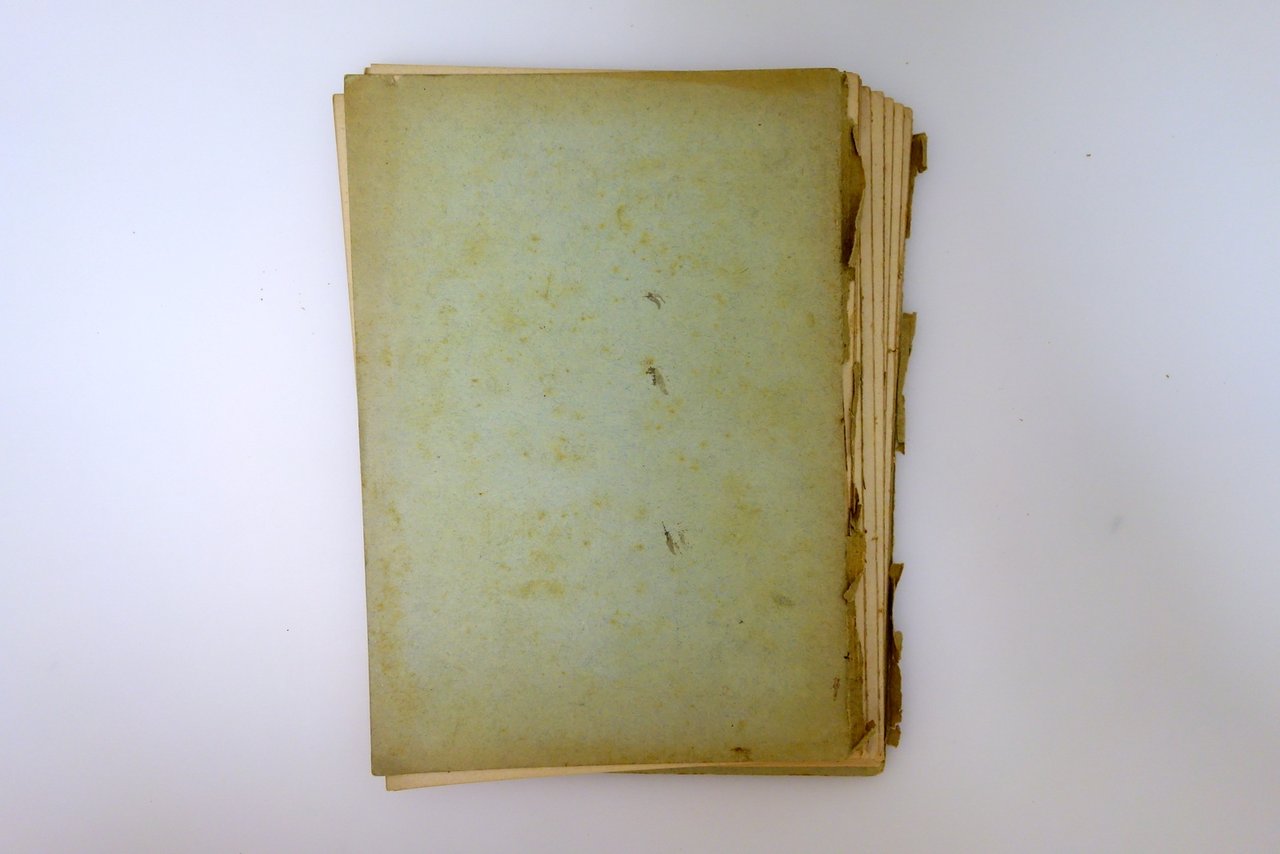 Condizioni modeste, con tracce d'uso; dorso fessurato e con mancanze, con conseguente distacco della br. anteriore e sfascicolazione dell'esemplare (vedi foto). Interni buoni.