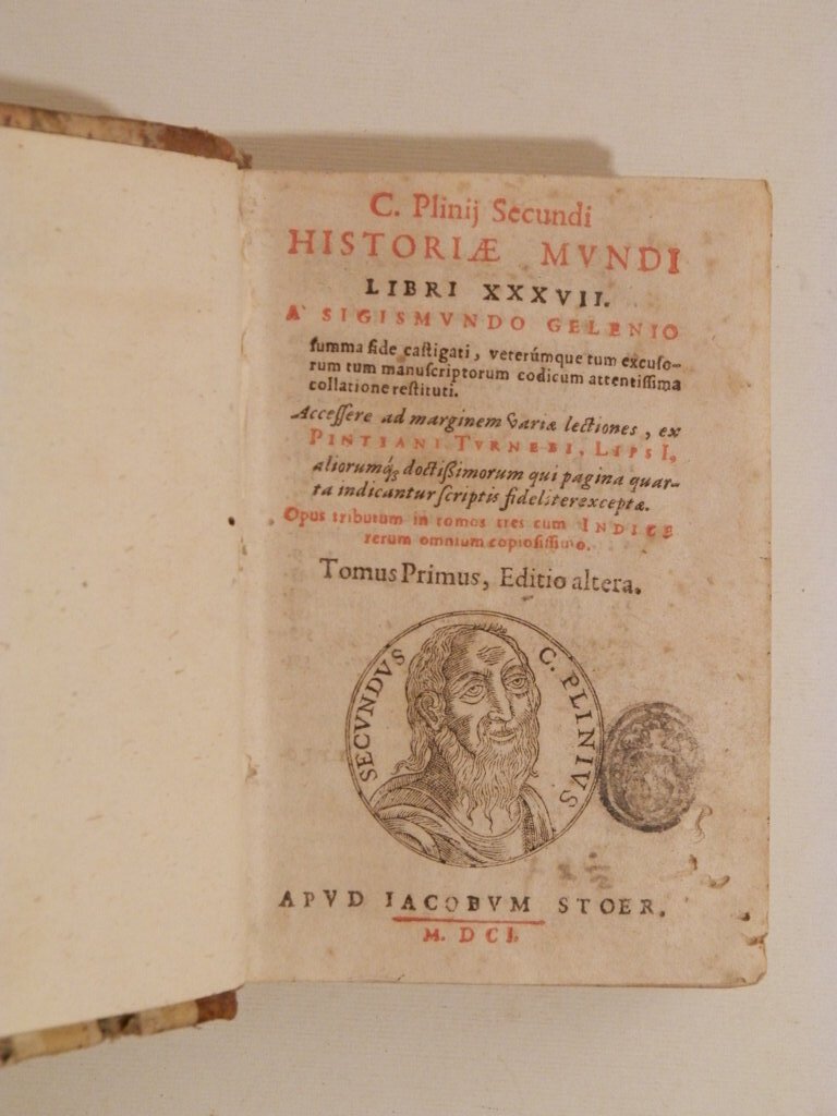 C. Plinij Secundi Historiae mundi libri XXXVII. A Sigismundo Gelenio, summa fide castigati, veterumque eum excusorum tum manuscriptorum codicum attentissima collatione restituti. Accesserunt ad marginem varia lectiones ex Pintiani Turnebi LipsI, aliorumque doctissimorum qui pagina quarta indicantur scriptis fideliter exceptae ... Tomus primus -tertius