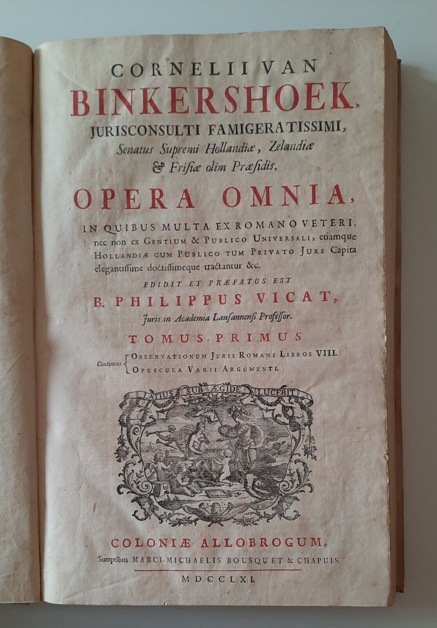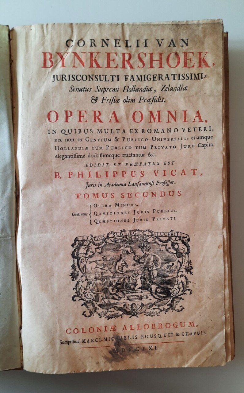 C. VAN BYNKERSHOEK OPERA OMNIA TOMUS PRIMUS SECUNDUS ALLOBROGUM 1761 2 VOL.