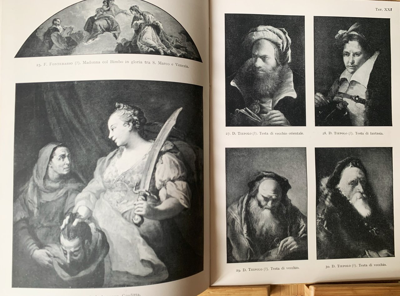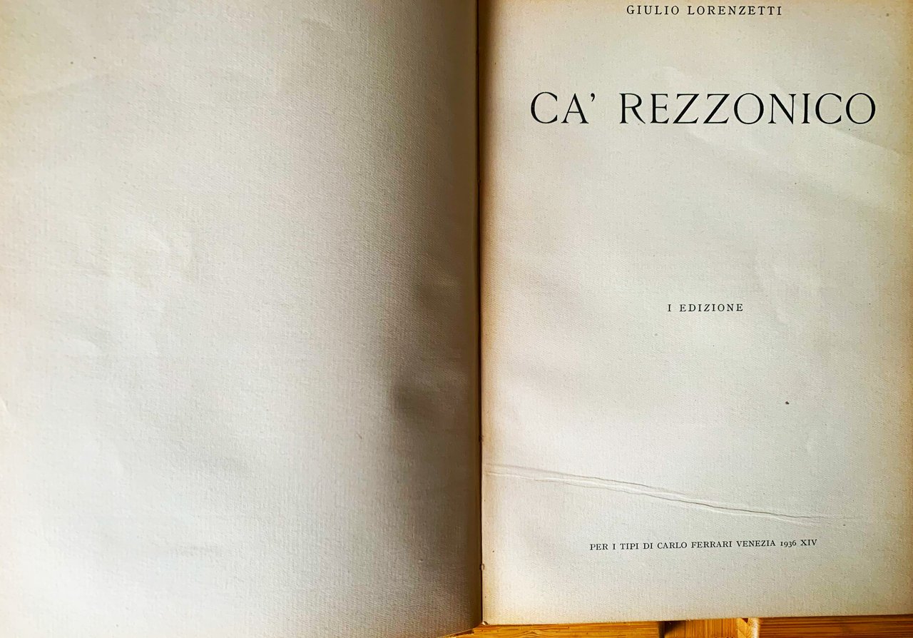I ed. (1936 XIV). "Il Palazzo Rezzonico con le sue collezioni costituisce la Sezione Settecentesca del Civico Museo Correr. la Sezione Prima ha sede nelle Procuratie di San Marco. La Terza è costituita dal Museo Vetrario di di Murano" (nota, p. 6). VIII, 96+ rilegatura rifinita esternamente in carta écru con al primo piatto un'incisione acquerellata (stemma). Con 151 illustrazioni in b/n in LXVIII tavole patinate f.t. (fotografie eseguite dal Cav. Pietro Fiorentini e dal Cav. Pietro Giacomelli). Con inoltre le piante in nero dei tre piani del Palazzo. Stato buono (leggero stato d'uso della copertina - leggera brunitura delle pagine, in particolare ai margini). Indice: Prefazione; Nino Barbantini - Ca' Rezzonico - La visita al Palazzo (Il Primo piano (Salone da ballo - Sala dell'Allegoria Nuziale - Cappella - Sala dei Pastelli - Sala degli Arazzi - Sala del Trono - Sala del Tiepolo - Andito di passaggio - Sala della Biblioteca - Mostra delle pubblicazioni veneziane settecentesche di occasione - Sala di passaggio o dei Lazzarini - Sala del Brustolon - "Portego" di mezzo) - Il Secondo piano ("Portego" dei dipinti - Sala del Guardi - Camera dell'alcova - Stanzino del falchetto - Camerino degli stucchi - Salotto delle lacche verdi - Sala dei Longhi - Sala del "Ridotto" e del "parlatorio" - Andito - Camera della spinetta - Villa del Tiepolo a Zianigo (Portico di entrata - Andito - "Portego del Mondo novo" - Camera dei pagliacci - Chiesetta - Camerino dei centauri - Camera dei satiri)) - Il Terzo piano (Mostra dei Disegni del Longhi - Mostra dei disegni del Tiepolo - Mostra della Porcellana Veneta - Saletta delle Carte Cinesi - Mostra dei Disegnidei Guardi - Passaggio al Teatro - Teatro delle Marionette - Passaggio alla Farmacia - Farmacia - Laboratorio - Retro Farmacia - Sala dei Costumi.