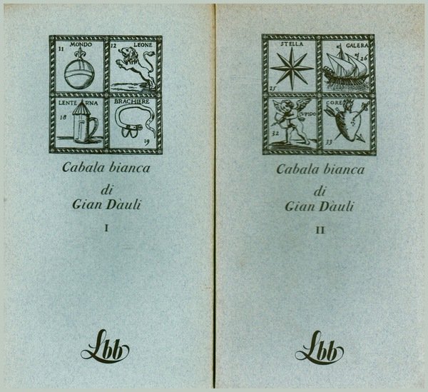 Prima edizione, 1973. Collana La biblioteca blu. Opera in 2 volumi, copertina flessibile, brossura editoriale, pp 253, 297. . E' il 1944 quando Gian Dˆuli scrive Cabala bianca, uno dei libri piu inusuali della narrativa italiana del Novecento. Concepito come una scatola cinese, il romanzo racconta le giornate di un uomo qualunque che confonde la vita reale con il mondo dei sogni, senza rispettare il naturale alternarsi del sonno e della veglia, mescolando le proprie esperienze notturne e diurne. Tra i vari personaggi la moglie Clementina e l'amico Piero, che rivestono i ruoli di vittime o carnefici in maniera ambigua, ma anche figure dall'esistenza incerta, come l'amante Gabriella e il figlio Bernabo, che appaiono e scompaiono come impalpabili ombre e luci. Un libro raro, vero gioiello della nostra letteratura.