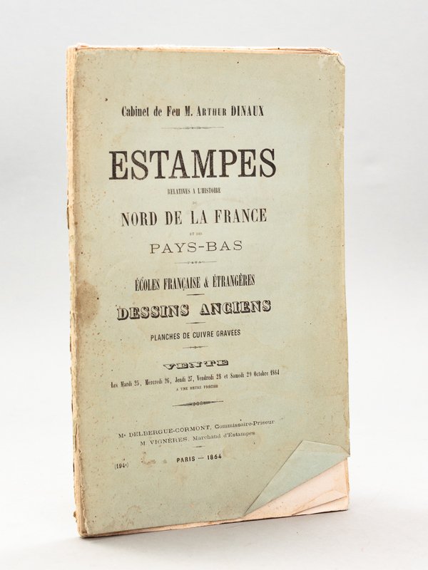 Cabinet de Feu M. Arthur Dinaux. Estampes relatives à l'Histoire du Nord de la France et des Pays-Bas. Ecoles Françaises & Etrangères. Dessins anciens. Planches de cuivre gravées. Vente les Mardi 25, Mercredi 26, Jeudi 27, Vendredi 28 et Samedi 29 Octobre 1864 [ Edition originale ]