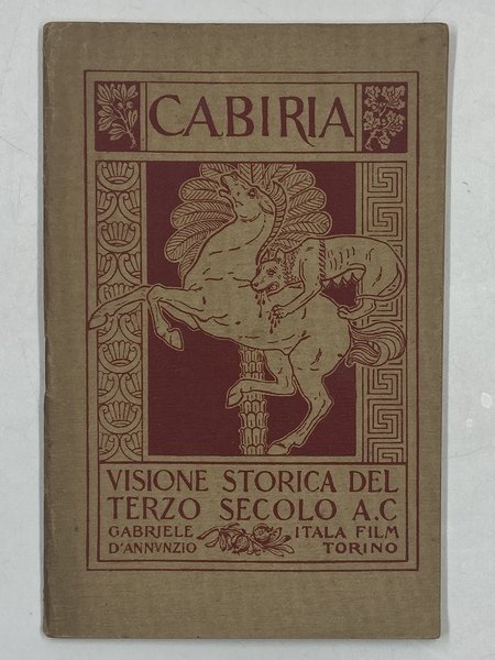 Brossura editoriale illustrata, spillato, cm12x1 8, pp 31 (1). Prima edizione (della tiratura in sedicesimo); opuscolo con le didascalie del film di Giovanni Pastrone, distribuito all'ingresso delle sale.