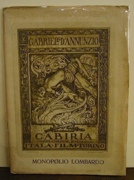 8vo (cm. 25), 45(3) pp. Frontespizio, ill.ni, fregi ed iniziali istoriati in nero e rosso. Ritratto dell’A. eseguito dalla pittrice Romaine Brooks con firma in facsimile d’autografo (su foglio volante). Copertina editoriale in cartoncino giallo con disegni e titoli color seppia di Mauzan (nella parte inferiore scritta ‘Monopolio Lombardo’). Esemplare impresso su carta mano con barbe (di dimensioni maggiori di quella citata dal De Medici) a Milano a cura della ‘Clamor’ con tipi ed incisioni di Bertieri e Vanzetti. Ottimo stato di conservazione. Edizione originale. De Medici, 80; Guabello, 195; Vecchioni, 46.