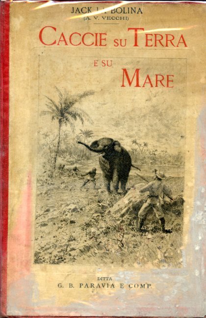 In-8°, pp. 116 + 16 di catalogo editoriale, legatura editoriale in tela rossa e cartone figurato (con qualche traccia d'uso). Illustrazioni in b.n. di Chessa n.t. e f.t. Buon esemplare. Prima edizione. Augusto Vittorio Vecchi, forse più celebre con il nome d'arte di 'Jack La Bolina' (Marsiglia, 1842-Forte dei Marmi, 1932). fu scrittore di cose marinaresche, Ufficiale di Marina e scrittore. Figlio del patriota garibaldino Candido Augusto Vecchi, partecipò giovanissimo alla battaglia di Lissa, nel 1866. Nel 1879, lasciato il servizio in marina, fu tra i fondatori dello Yacht Club Italiano e, nel 1897, contribuì a fondare la Lega Navale Italiana. Collaboratore de 'Il Fanfulla', del 'Giornale per i bambini' di Ferdinando Martini e de 'Il giornalino della domenica' di Vamba, nei suoi numerosi scritti divulgò instancabilmente la vita di mare, la tecnica nautica, la pesca, ecc.