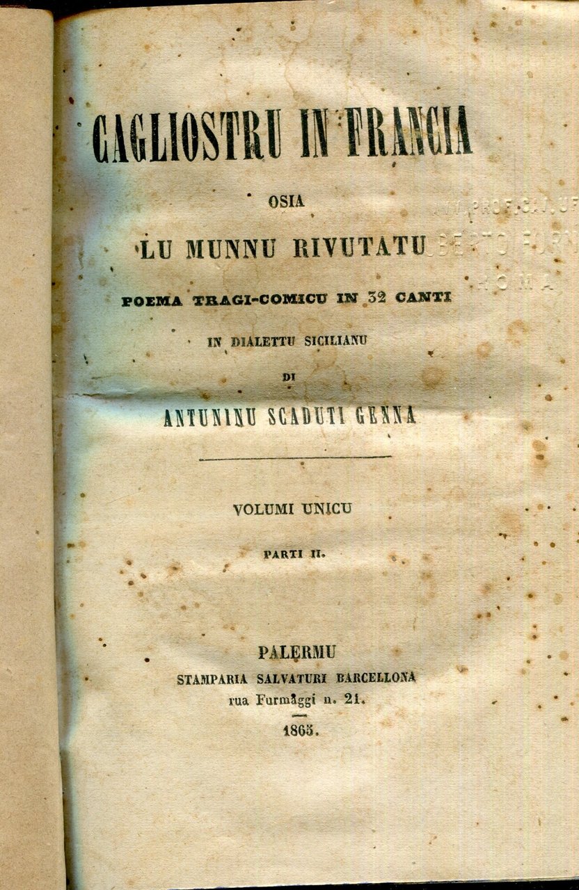 Cagliostru in Francia osia Lu munnu rivutatu : poema tragi-comicu in 32 canti in dialettu sicilianu