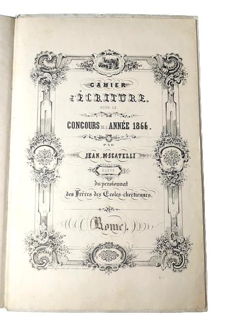 Cahier d'Ecriture pou le Concurs de l'annee 1866 par Jean M. Scatelli, élève du pensionnant des Frères des Ecoles-chrétiennes. Rome.