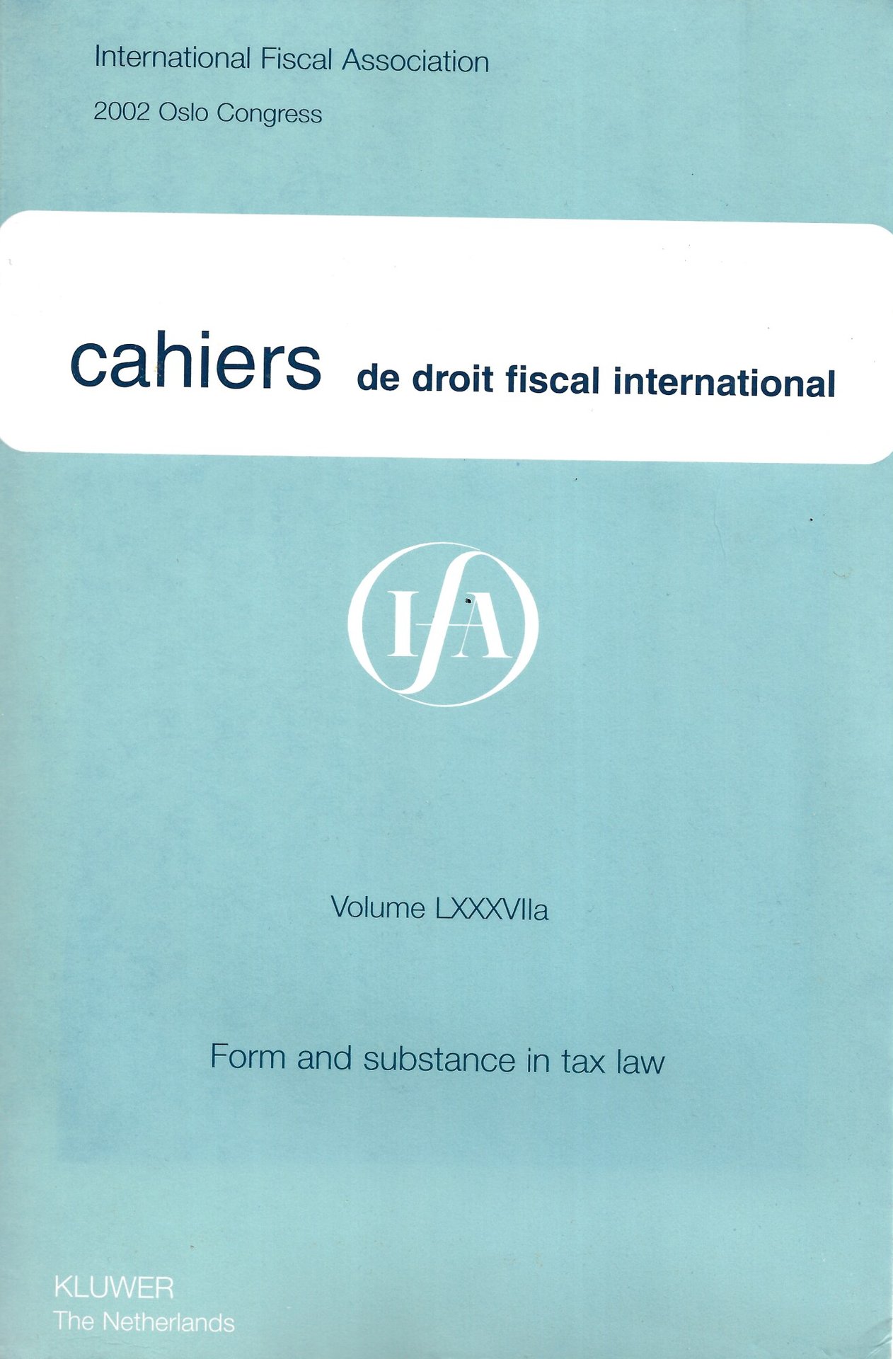 Cahiers De Droit Fiscal International: Form and Substance in Tax Law: No. 87a