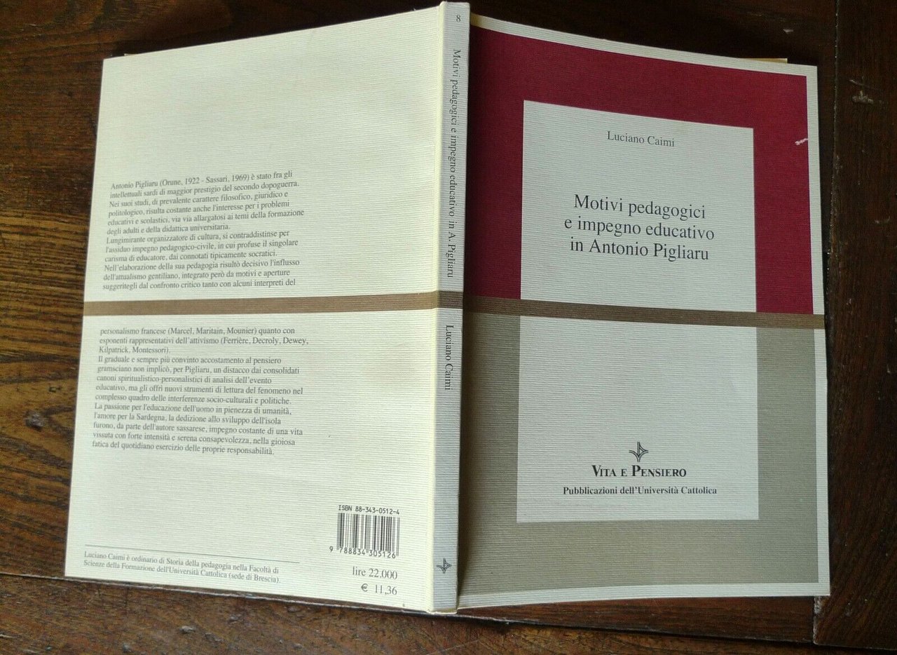 Luciano Caimi,MOTIVI PEDAGOGICI E IMPEGNO EDUCATIVOIN ANTONIO PIGLIARU.Vita e Pensiero, Milano 2000,brossura, 22x16 cm., pp.124,collana SCIENZE PEDAGOGICHE n.8,peso: g.250