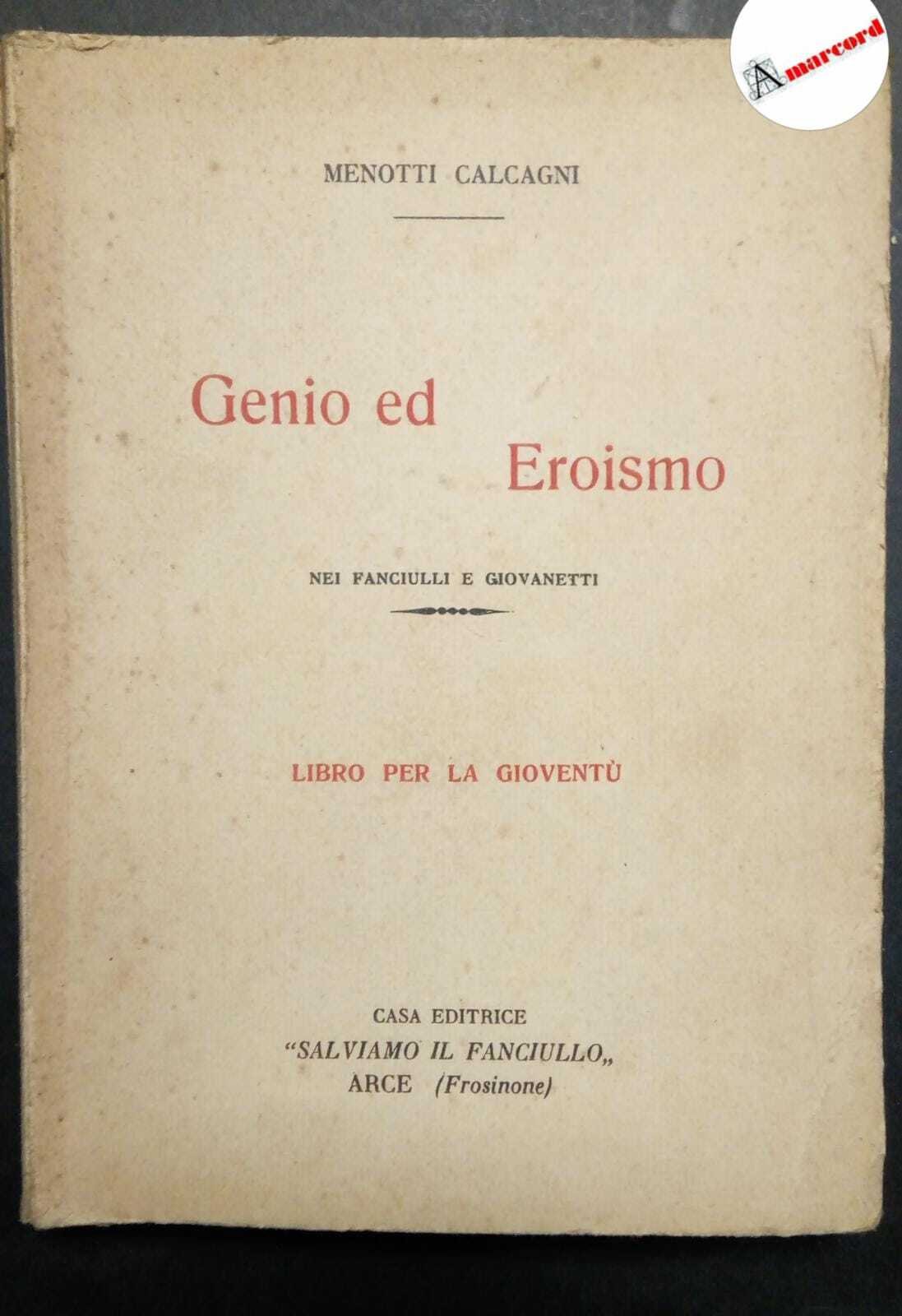 870 Calcagni Menotti Calcagni Menotti, Genio ed eroismo, Salviamo il Fanciullo, 1929.. Arce, Salviamo il Fanciullo 1929 italiano, in sedicesimo 320 38437