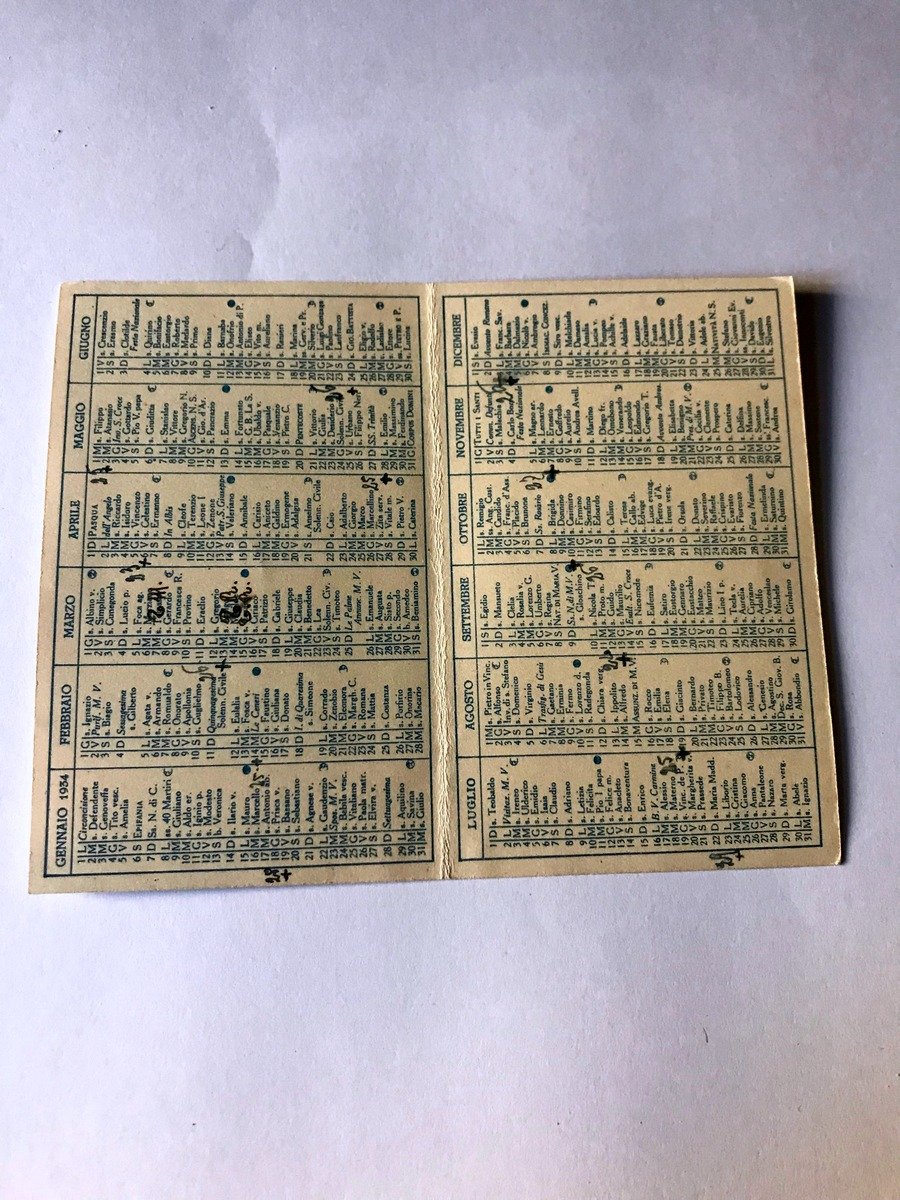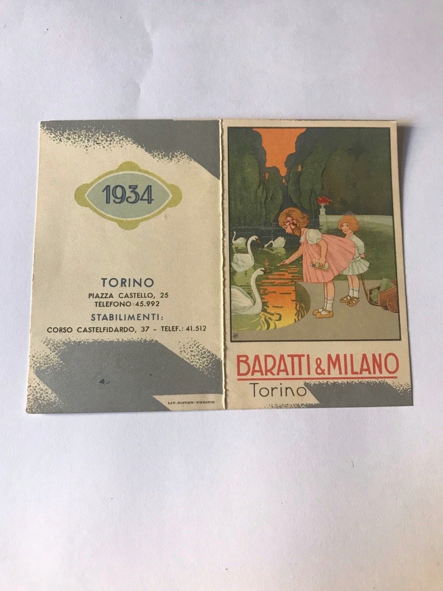 Calendarietto da barbiere, Calendarietto Baratti e Milano Torino 1934 CART.0779 blu Lit Doyen Torino 1934; 6x10 cm; pp. 2 nn. Brossura ed. ill. a colori. , calendario. Condizioni di conservazione Calendario in ottimo stato di conservazione con minimi segni del tempo.Alcune date appuntate Ricercato calendarietto Baratti e Milano. CART.0779 blu