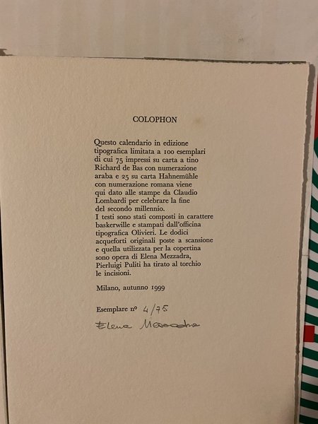 Con 12 acqueforti originali più una utilizzata per la copertina Tiratura di 75 esemplari numerati e firmati al colophon da Elena Mezzadra Esemplare numero 4 / 75