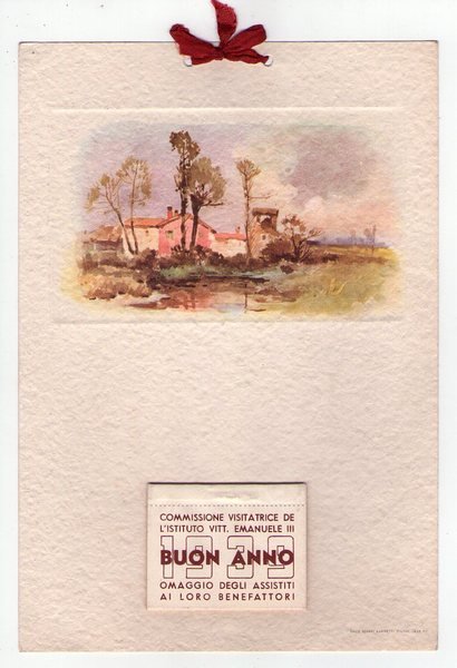 Calendario, calendarietto. Commissione visitatrice de l'Istituto Vittorio Emanuele III. Omaggio degli assistiti ai loro benefattori. Buon anno 1939.