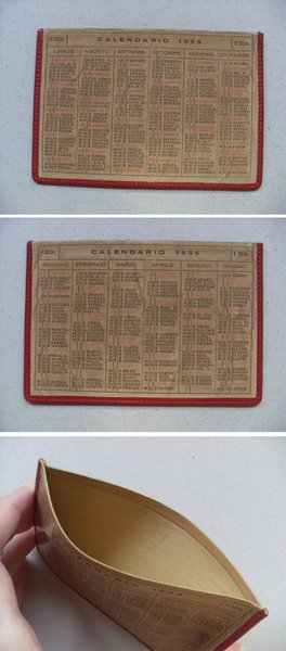Calendario / calendarietto porta foglietti in pelle 1956