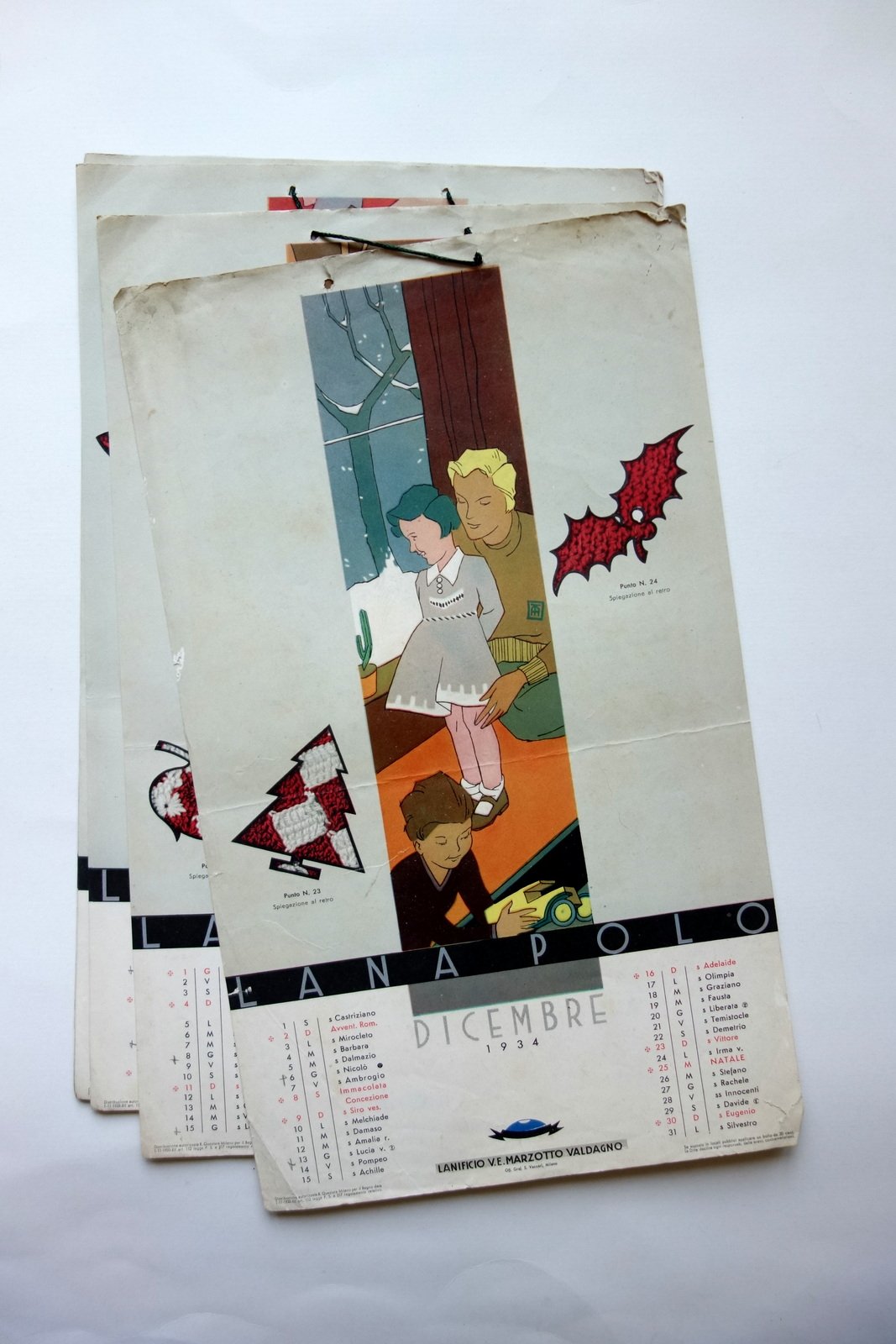 Calendario Lana Polo Lanificio Marzotto Valdagno Vicenza 1934 Grafica Deco