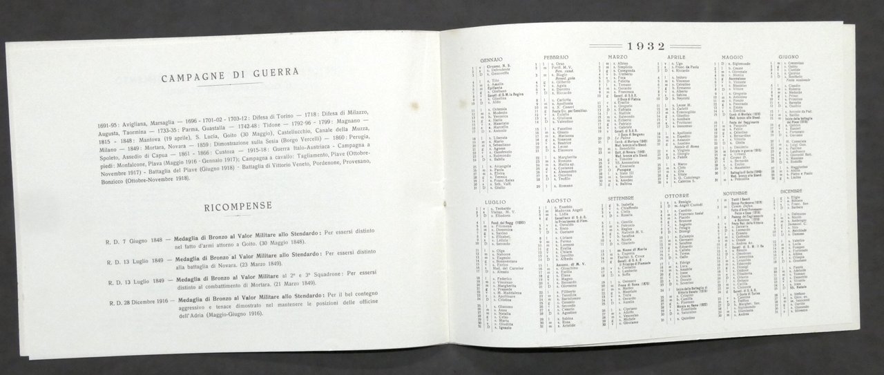 Militaria Calendario Reggimento Nizza Cavalleria - Duecentoquarantaduesimo dalla sua fondazione - Anno 1932 Pag. 6 Dimensioni: 21 x 29 cm. Condizioni molto buone.