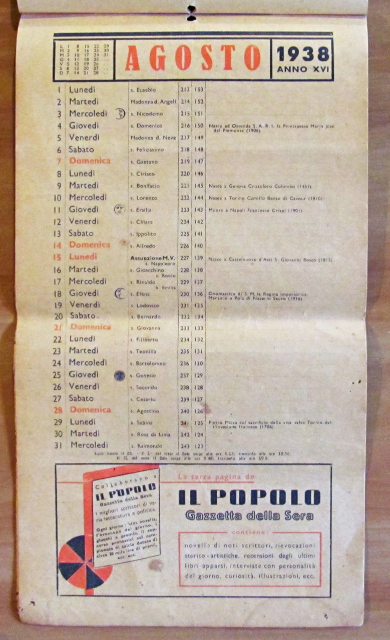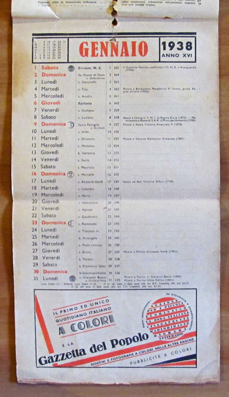 CALENDARIO PER LE FAMIGLIE 1938 - GAZZETTA DEL POPOLO