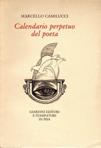 Calendario perpetuo del poeta, prima edizione ottobre 1990, pp. 197, formato 15 x 21,5.<BR>Copertina morbida di colore beige con piccola illustrazione al centro del piatto anteriore, titoli in nero e rosso. Volume facente parte della collana "Ecce Homo" diretta da Vittorio Vettori. In prima pagina presente dedica dell'autore, datata novembre 1991. <BR>Ottime condizioni.