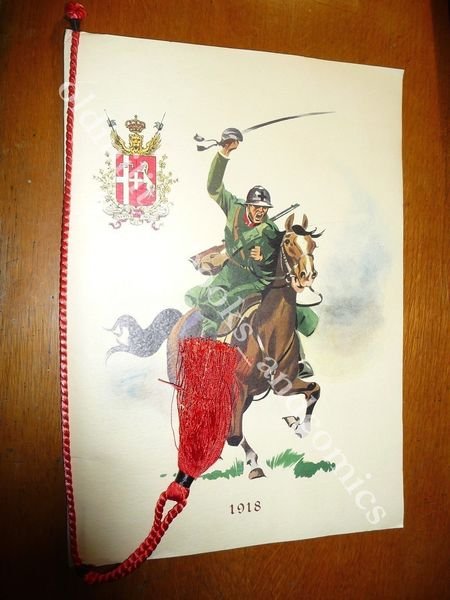 TITOLO: REGGIMENTO PIEMONTE CAVALLERIA 1968 DESCRIZIONE: Calendario Reggimentale composto da 8 pp., con dedica ed elenco degli appartenenti al Reggimento per l'anno di stampa. Cordoncino originale. CONDIZIONI: Otime piccole pieghette. PESO / WEIGHT: 143 gr. without package