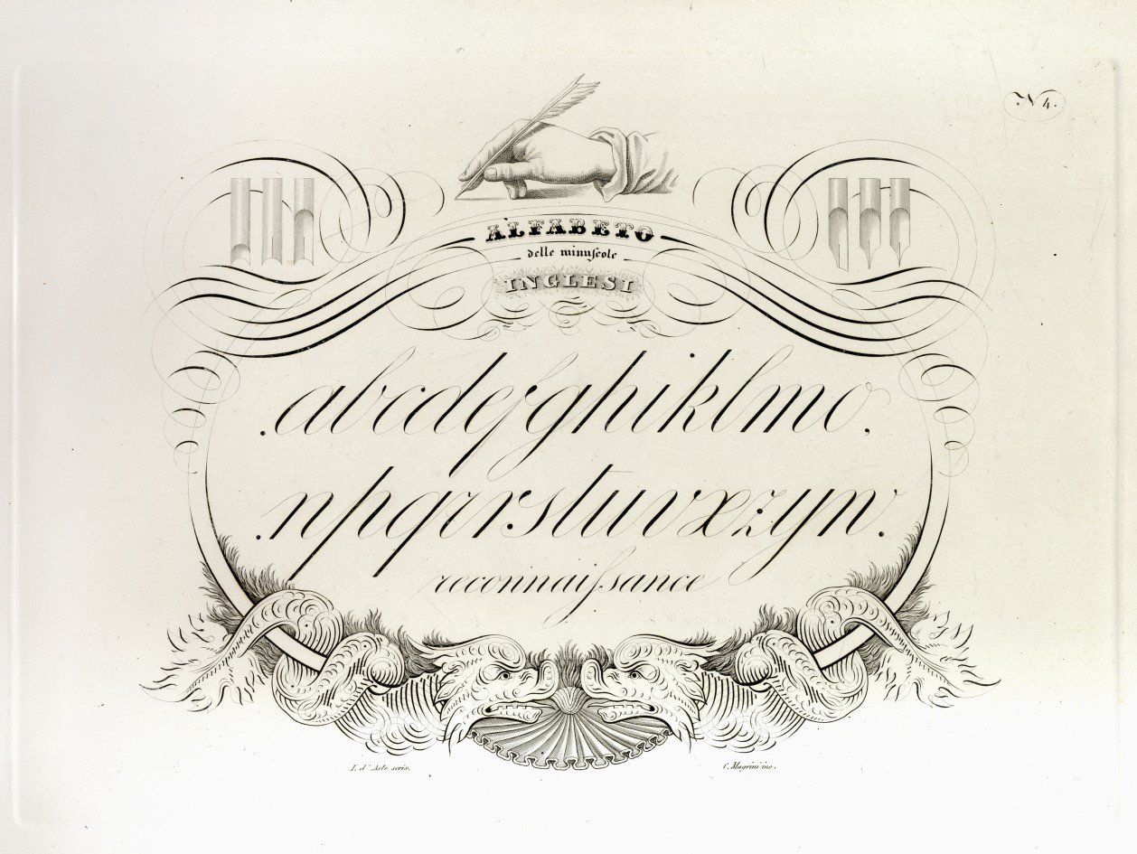 Calligrafia che comprende le norme principali per eseguire con facilita qualunque specie di carattere.