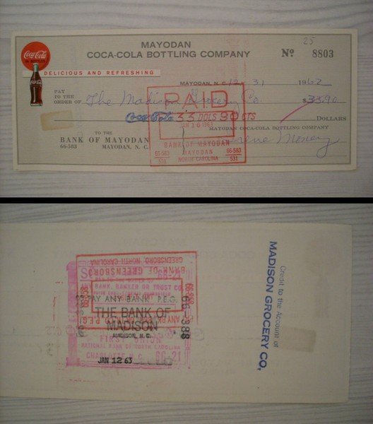 Cambiale/promissory note COCA COLA - Bank of MAYODAN (North Carolina) 1962