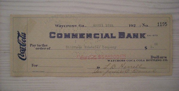 Cambiale/promissory note COCA COLA - Commercial Bank Waycross (Georgia) 1929