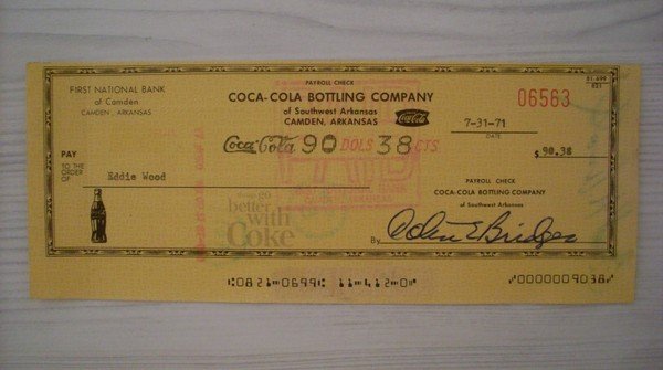 Cambiale/promissory note COCA COLA - First National Bank of Camden (Arkansas) 1971