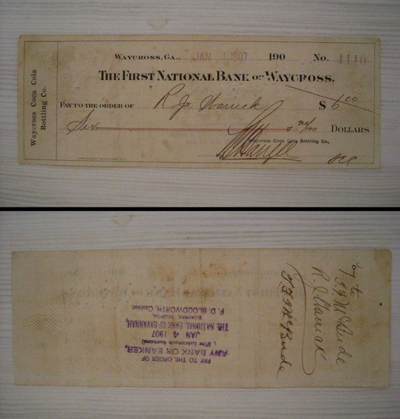 Cambiale/promissory note COCA COLA - First National Bank Waycross (Georgia) 1907