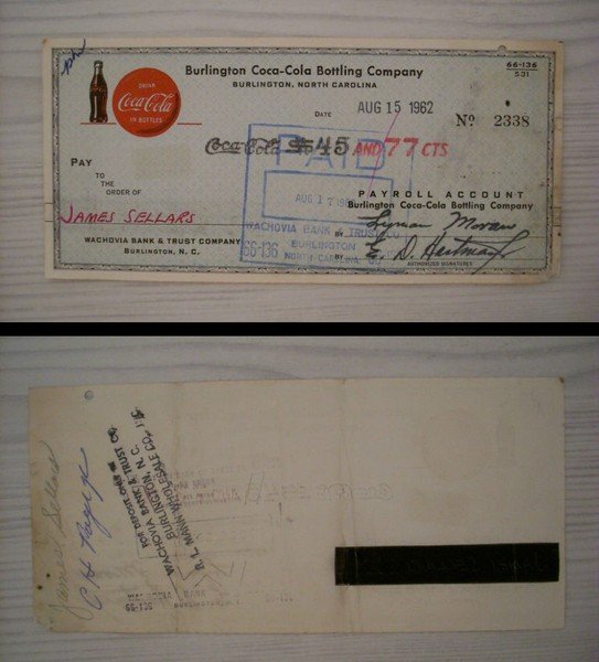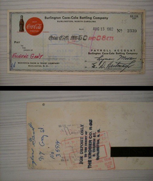Cambiale/promissory note COCA COLA - Wachovia Bank & Trust Company BURLINGTON (North Carolina) 1962