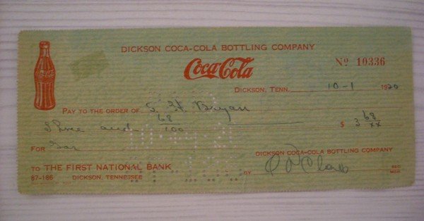 Cambiale/promissory note Dickson COCA COLA - First National Bank 1920