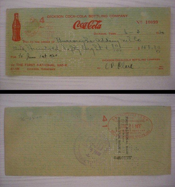 Cambiale/promissory note Dickson COCA COLA - First National Bank 1920