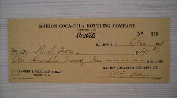 Cambiale/promissory note Marion COCA COLA - Farmers and Merchants Bank 1928