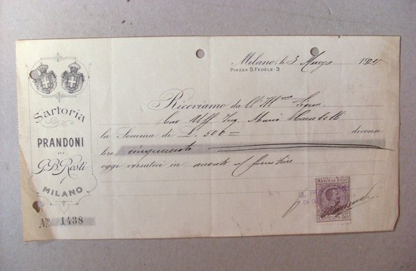 Cambiale Sartoria PRANDONI di Rosti - MILANO 1924