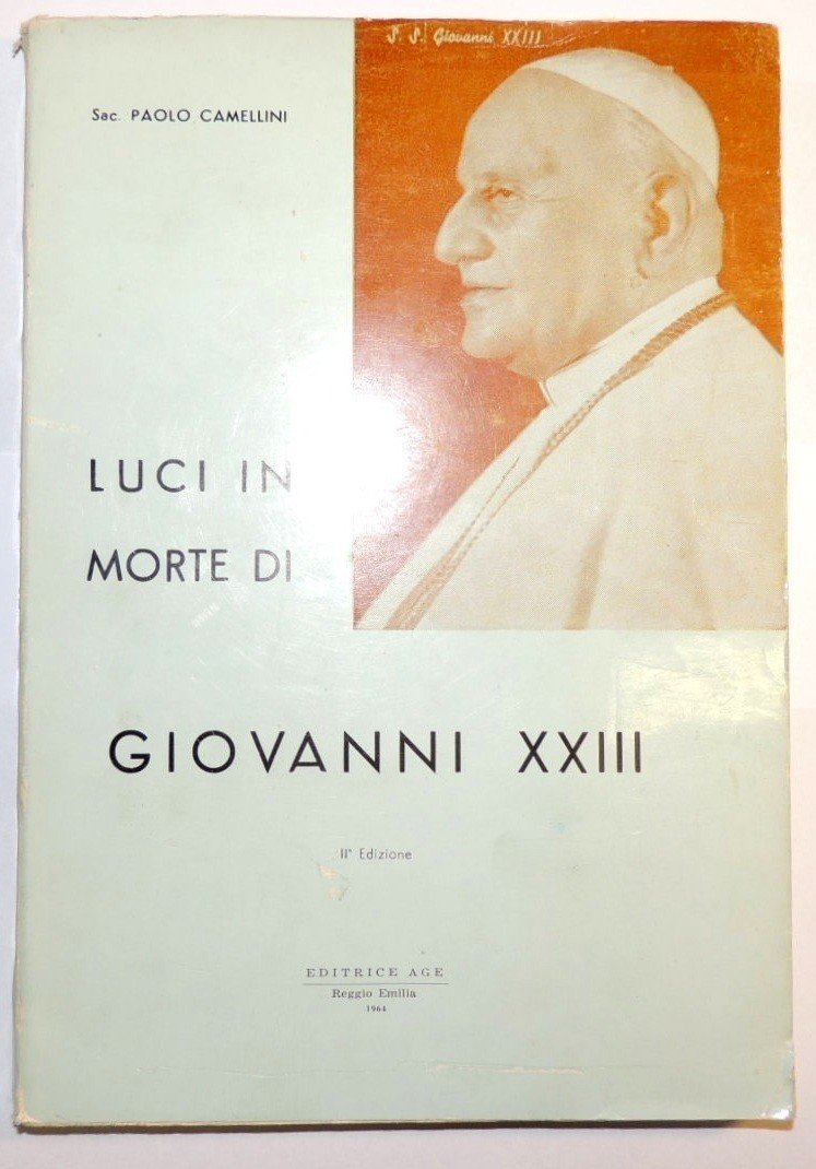 Paolo Camellini, Luci in morte di Giovanni XXIII, Editrice AGE, Reggio Emilia 1964, pp. 124, cm 25, br. ed. Piccola abrasione sulla copertina posteriore, per il resto buon esemplare.