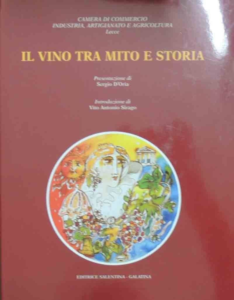 Camera di Commercio Industria, Artigianato e Agricoltura – Lecce, Il vino tra mito e storia, Presentazione di Sergio D’Oria, Introduzione di Vito Antonio Sirago, Editrice Salentina, Galatina (Lecce) 2002, pp. 187, testatine ill. col., cm 29, tela ed. con titoli in oro al piatto e sovraccoperta. Indice: Sergio D’Oria, Presentazione – Vito Antonio Sirago, Introduzione – Franco Della Tommasa, Dalle origini al Kurum e dall’oinos al merum – Nicola Roncone, L’uva, la vite e il vin nell’Italia antica – Giuseppe Ruotolo, Il culto di Dioniso e le proprietà terapeutiche del vino – Diego Lazzari, Patrimonio vitivinicolo e colonizzazioni agrarie – Franco Antonio Mastrolia, La vitivinicoltura in Terra d’Otranto nell’Ottocento – Giuseppe Ruotolo, Dionysos nella monetazione antica. Perfetto. Estremamente raro.