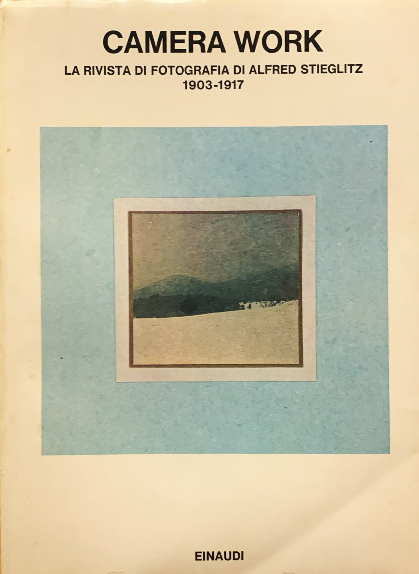 I ed. dell'antologia (20 novembre 1981). Collana Saggi, 637. VIII/ XII+156+(12)/ bross., sovraccoperta patinata con grafica in b/n/arancione e con illustrazione a colori al primo piatto ("Paesaggio invernale" di Steichen, 1904-5). Con 50 illustrazioni in b/n in tavole patinate f.t.. Stato buono (sovraccoperta e pagine leggermente brunite). Indice: Introduzione di Michela vanon - la Foto-Secessione e la fotografia come arte (Editoriale "CW", 1, gennaio 1903 - George Bernard Shaw; Evanss. Un riconosccimento; "CW", 4, ottobre 1903 - Robert Demachy; la stampa alla gomma bicromata; "CW", 7, luglio 1094 - Robert Demachy; Stampa diretta e trattata; "CW", 18, aprile 1907) - Fotografia diretta e avanguardie pittoriche europee (Alice Boughton; La fotografia, uno strumento espressivo, "CW", 26, aprile 1909 - Sadaakichi Hartmann; Sulla possibilità di nuovi canoni compositivi; "CW", 30, aprile 1910 - Henri Matisse alla Little Galleries; "CW", 23, luglio 1908 - Charles H. Caffin; Nota a Paul Cézanne; "CW", 34-35, aprile-luglio 1911 - Marius de Zayas; Paplo Picasso, "CW", 34-35, aprile-luglio 1911 - Marius de Zayas; Fotografia e fotografia artistica, "CW", 42-433, aprile-luglio 1913 - Oscar Bluemner; Alcune osservazioni sul moderno movimento artistico; "CW", numero speciale, giugno 1913 - Charless H. Caffin; Henri Matisse e Isadora Duncan; "CW",, 25, gennaio 1909) - Lafotografia come forma artistica autoctona: l'affrancamento dall'Europa (Sidney Allan; Il Flat-Iron Building. Una dissertazione estetica; "CW",, 4, ottobre 1903 - Paul B. Haviland; La mostra all'Albright Gallery. Fatti, figure e note; "CW", 33, gennaio 1911 - Alvin Langdon Coburn; Il rapporto fra arte e tempo; "CW", 36, ottobre 1911 - Marius de Zayas; Da "291", numero di luglio-agosto 1915; "CW", 48, ottobre 1916 - Paul Strand; La fotografia; "CW",, 49-50, giugno 1917).