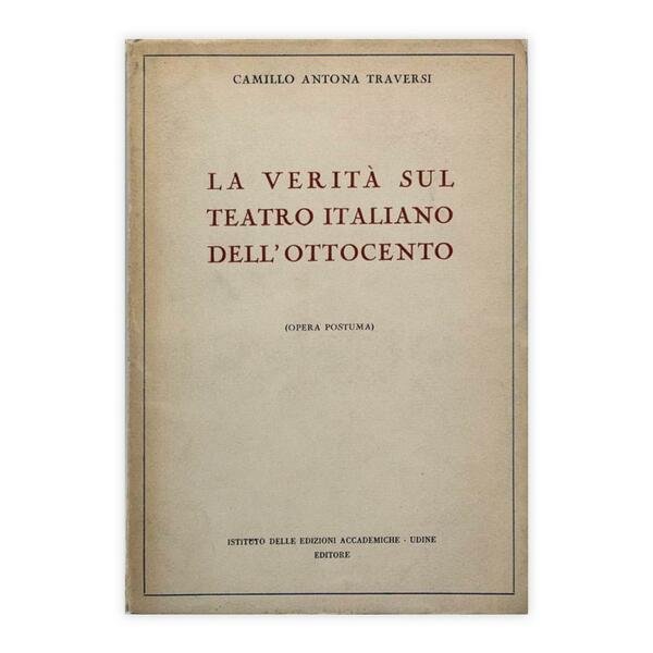 Autore: Camillo Antona Traversi Titolo: La verità sul teatro italiano dell'ottocento Sottotitolo: (Opera Postuma) Edizione: Istituto delle edizioni accademiche -Udine Editore 1940 Dimensioni: 14,5 x 21,5 cm c.a. Pagine: 385 Copertina: Brossura Condizioni: Ottime come da foto