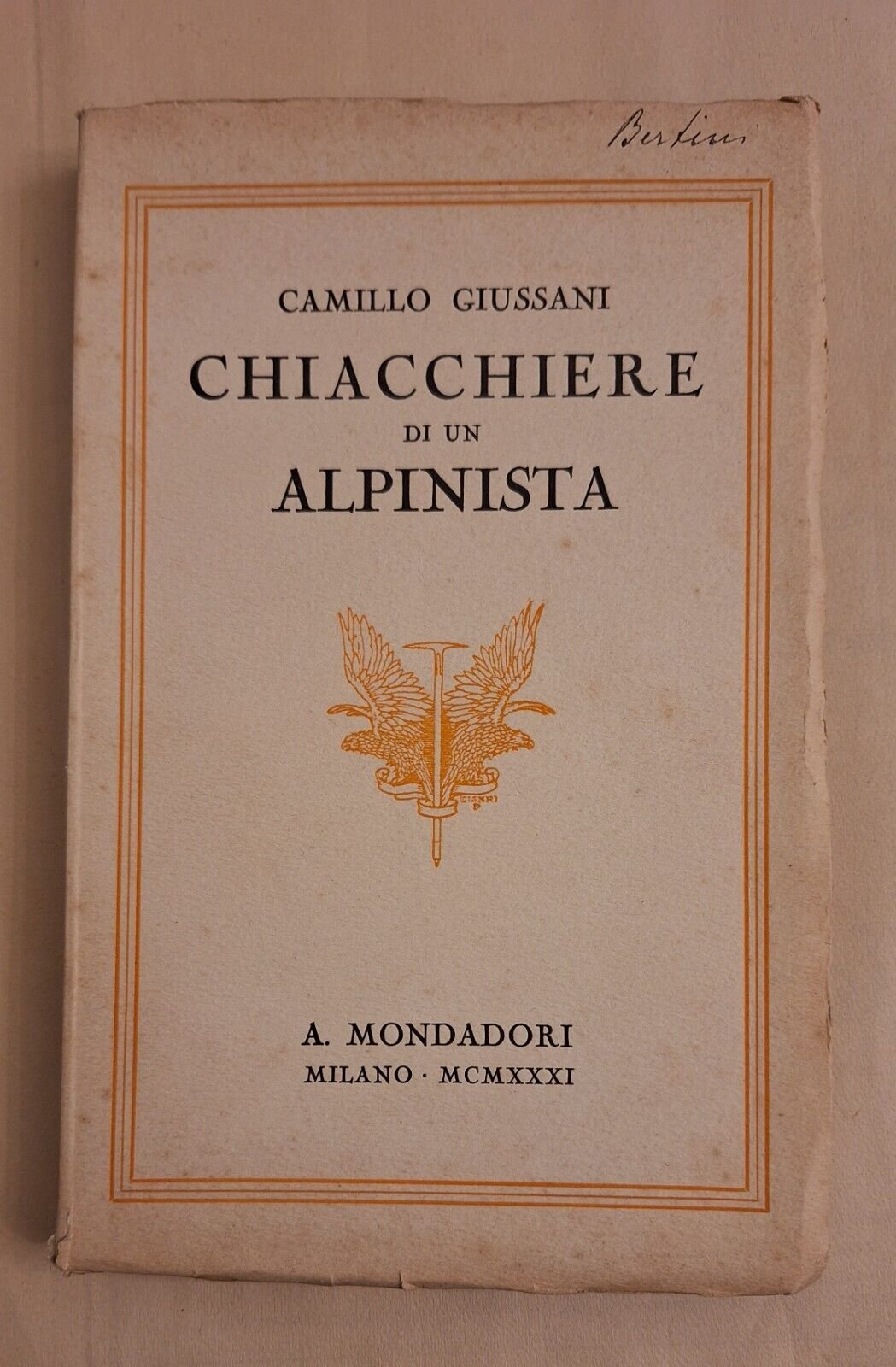 CAMILLO GIUSSANI CHIACCHERE DI UN ALPINISTA MONDADORI 1931In 8°, legatura editoriale, copertina illustrata.In ottime condizioni, lievissimi segni alla copertina.