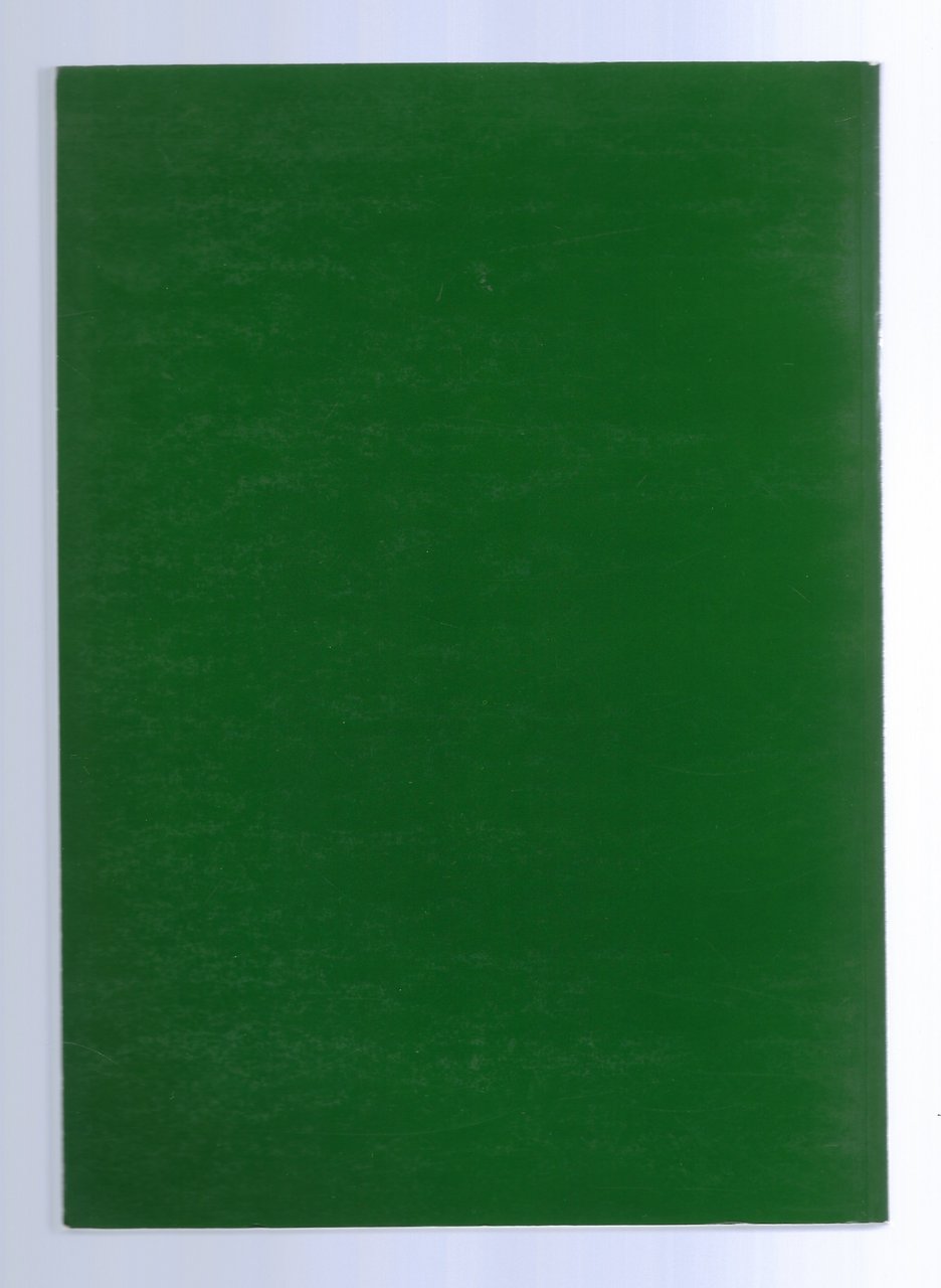Legatura in cartonato semi-rigido lucido, verde scuro, con la fotografia del Medeot al piatto anteriore.