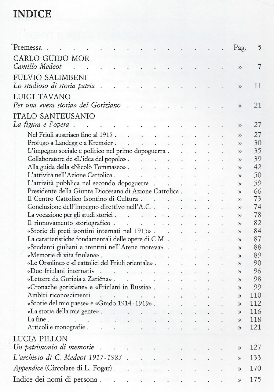 Esemplare in ottimo stato con illustrazioni n bianco e nero, scritti provenienti dall'archivio personale di Medeot, un'appendice, un indice dei nomi di persona ed uno generale.