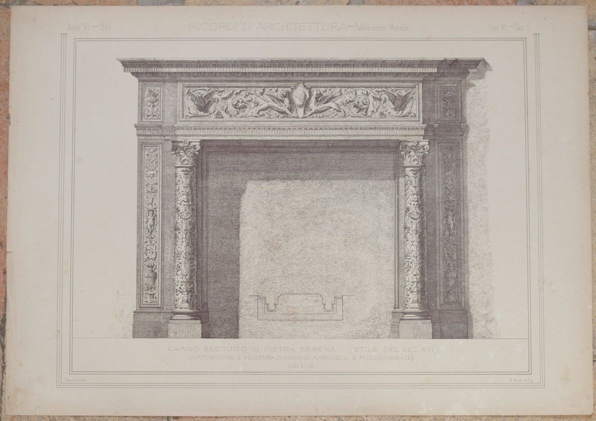 CAMINO ESEGUITO IN PIETRA SERENA (STILE DEL SEC. XVI) COMPOISIZIONE E SCULTURA DI ANGIOLO MARUCELLI E FIGLIO (FIRENZE)