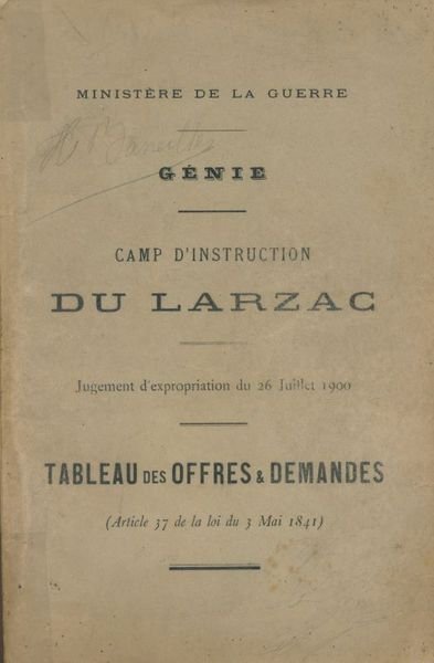 Camp d'Instruction du Larzac - Jugement d'expropriation du 26 juillet 1900 - Tableau des Offres et Demandes