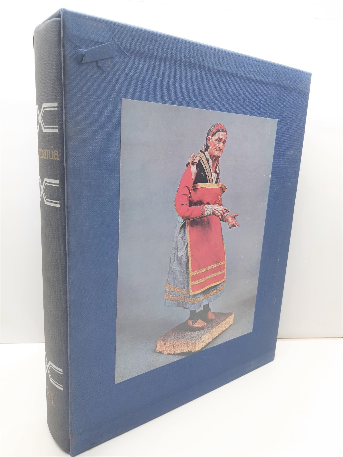 cofanetto rigido editoriale in discrete condizioni, 3 piccole spellature ai piatti del cofanetto, qualche lieve sporcizia, legatura rigida in tela blu con fregio in bianco al piatto anteriore e titolo al dorso, un piccolo strappo al margine superiore del dorso di circa cm 1 dorso leggermente brunito, fogli di guardia illustrati, interno in buono stato numero pagine 556 + 11 dimensioni cm 32 x 26,3