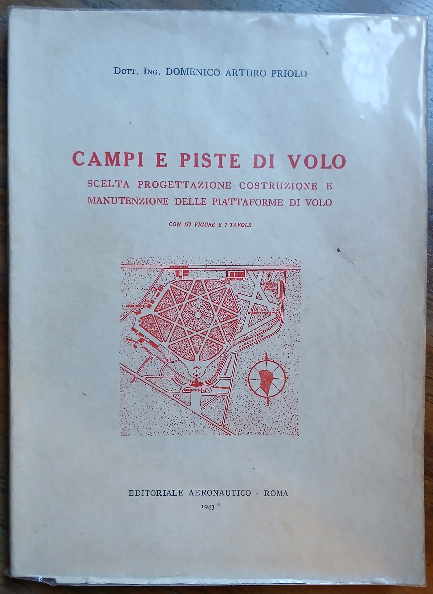 (Aviazione - Infrastruttura aeronautica) In 8°, brossura editoriale color avorio con stampati titoli e disegno tecnico in rosso e nero, protezione in plastica non editoriale, pp. 232, con 177 figure nel testo (molte fotografiche) e 7 tavole fuori testo di cui 4 più volte ripiegate. Indice : Scelta, costituzione, manutenzione dei campi di volo - Piste consolidate - Specchi d'acqua per idroscali - Campi di volo di eccezione ed aeroporti del futuro. Dedica autografa dell'autore al recto del foglio di guardia anteriore. Volume ben conservato.